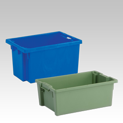 - Las cajas apilables y encajables con paredes rectas están hechos de PEHD y tienen paredes laterales perforadas que permiten la circulación del aire para mantener los productos fríos. Las paredes laterales rectas proporcionan un volumen interno máximo. Este contenedor está disponible con fondo cerrado o perforado. Son muy utilizados para el almacenamiento y el transporte de frutas, verduras, carne, aves y productos de panadería.